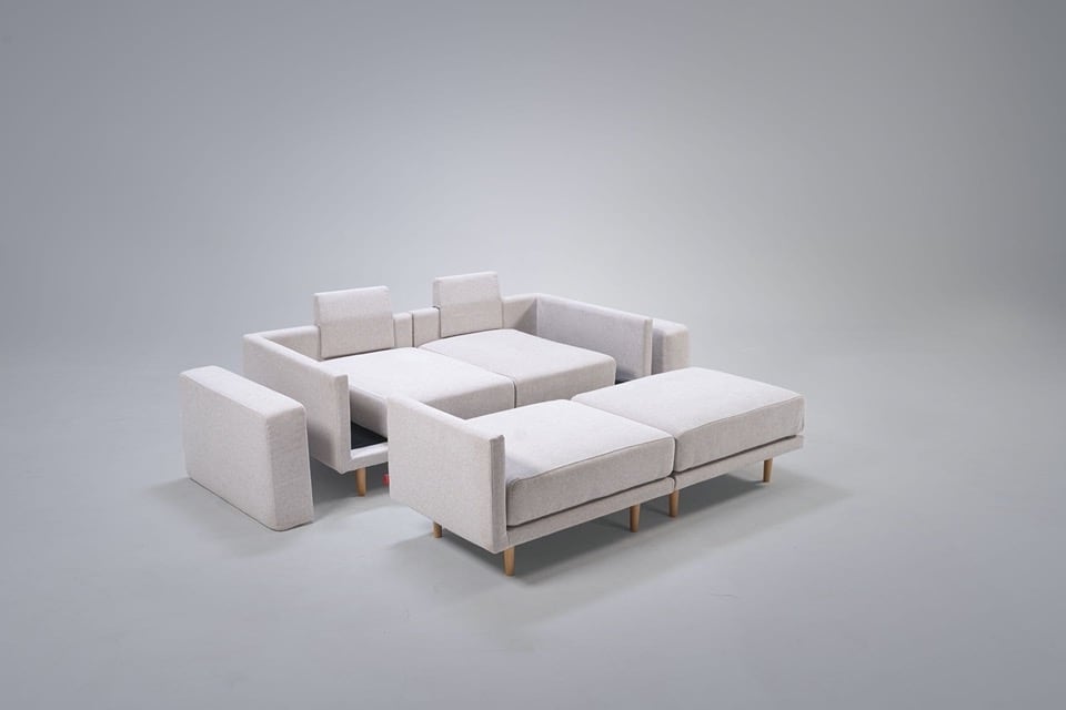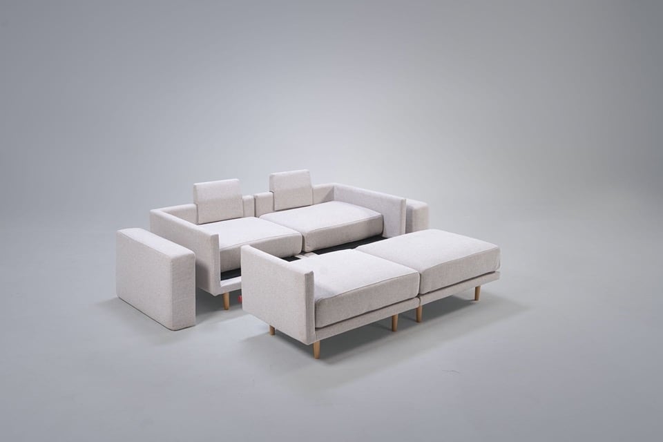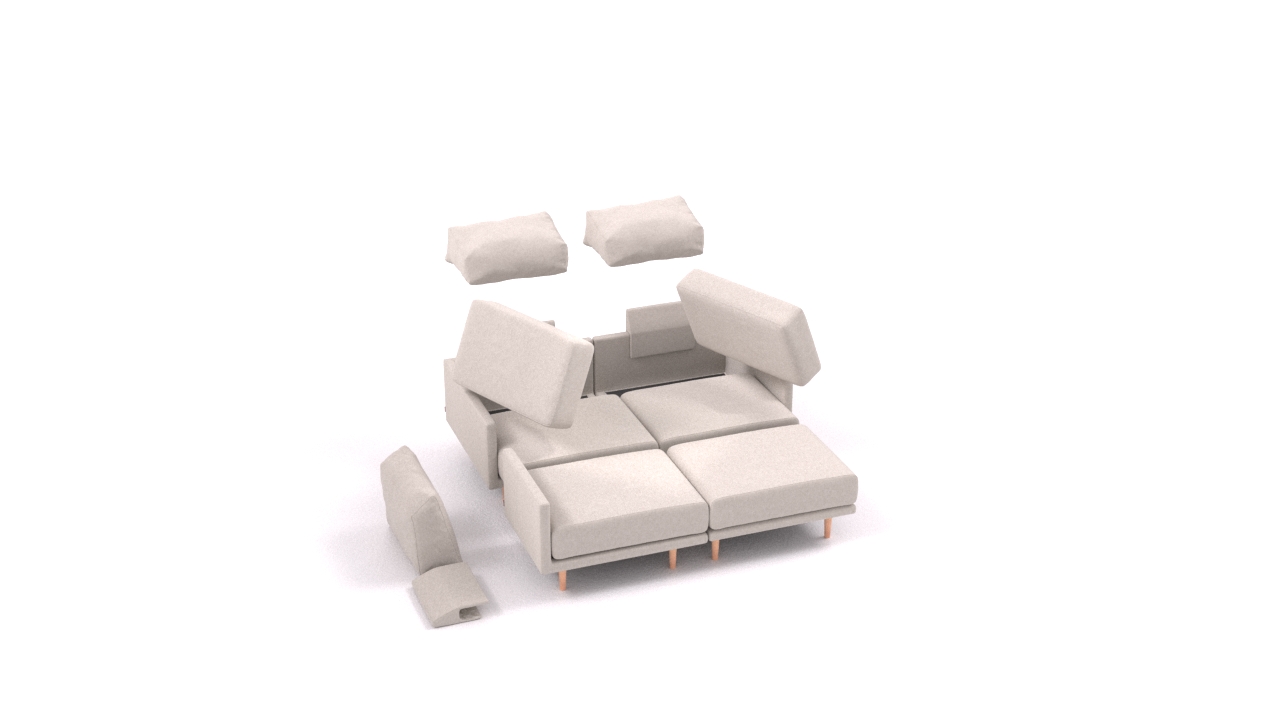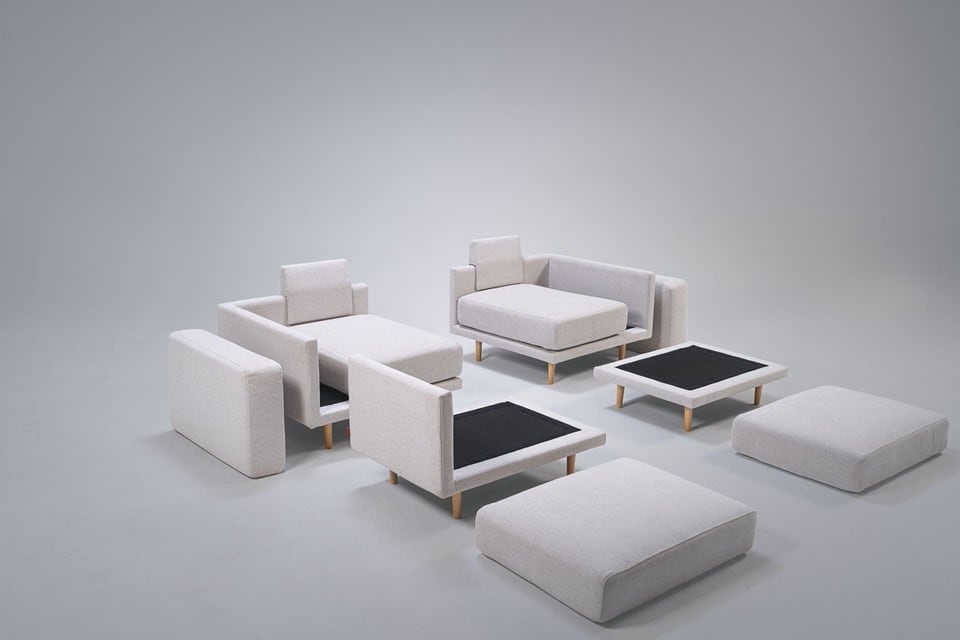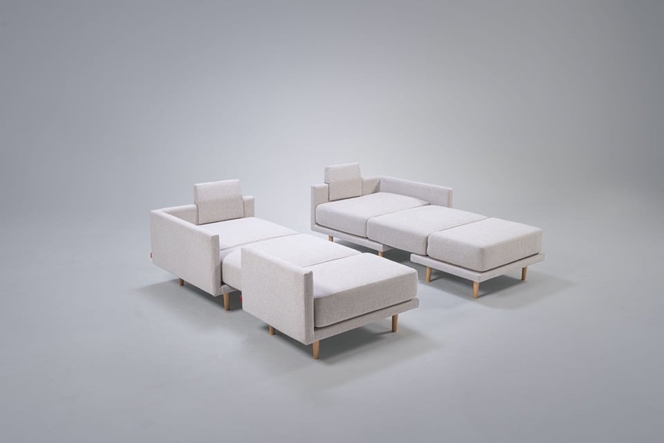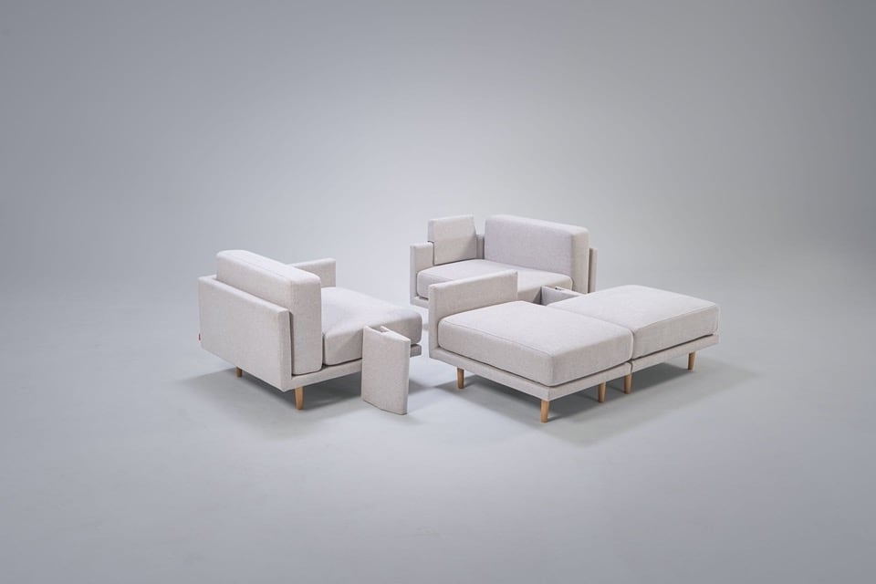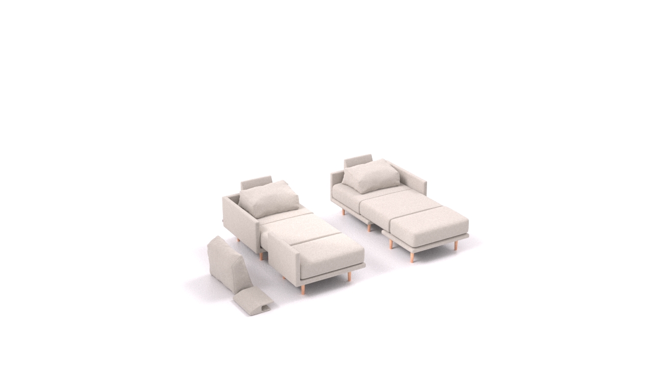 Clooods is not just a sofa. With a few movements, you can transform it into many different positions. Move the slider to see some positions.
