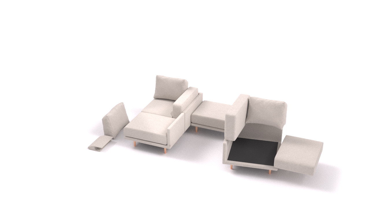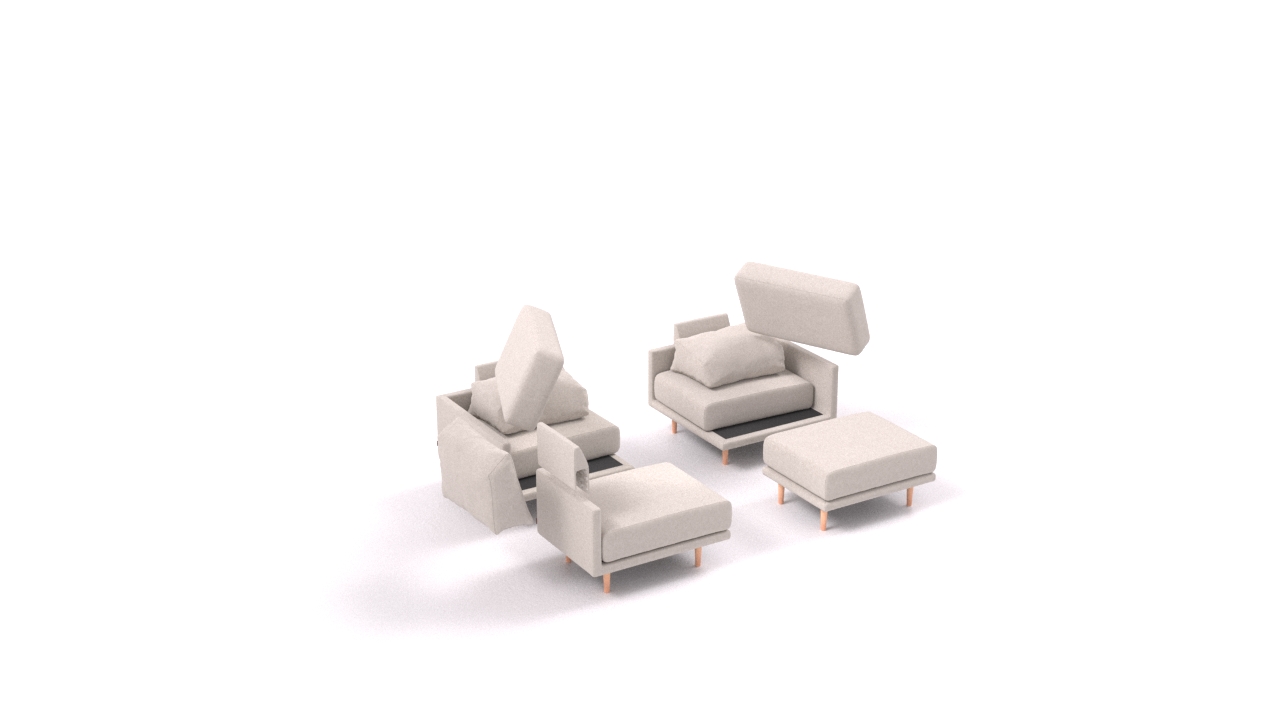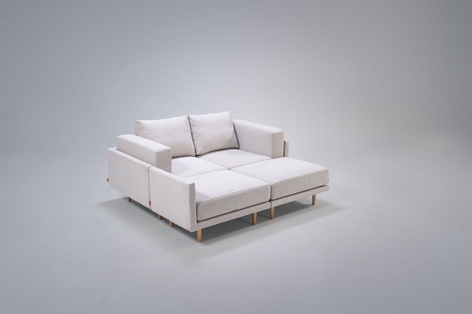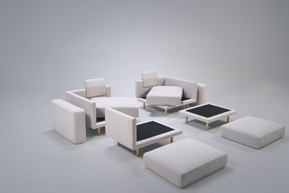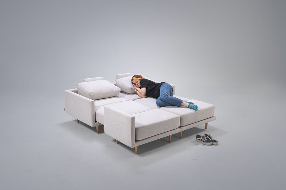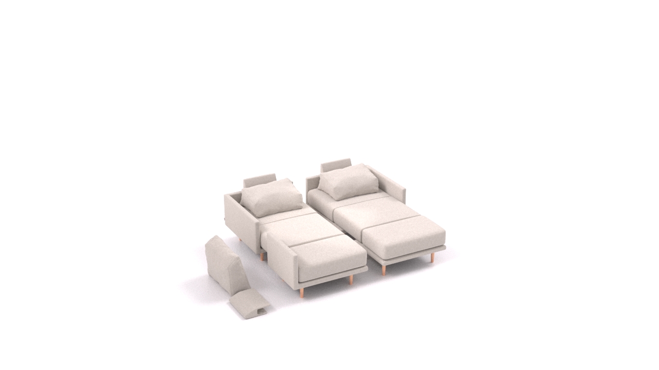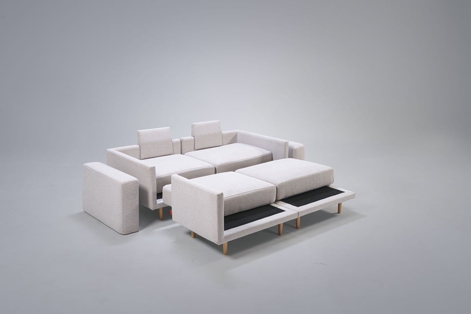 Clooods is not just a sofa. With a few movements, you can transform it into many different positions. Move the slider to see some positions.