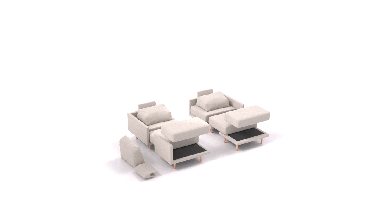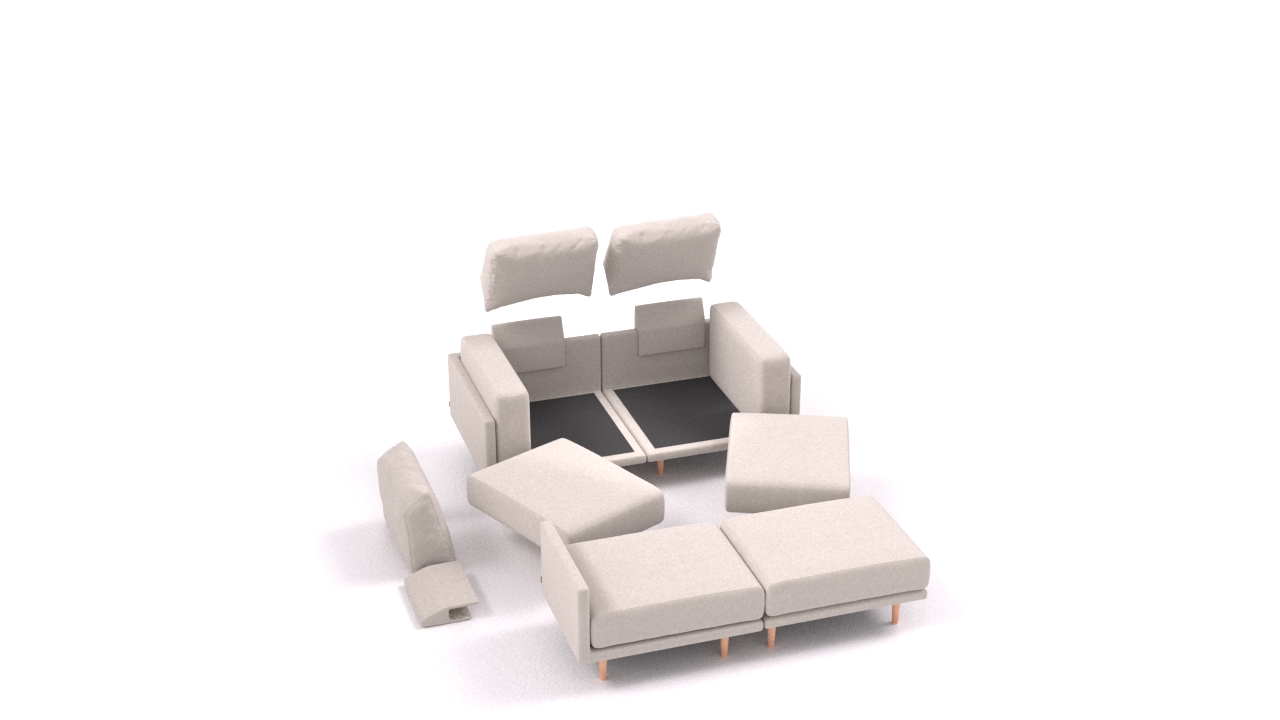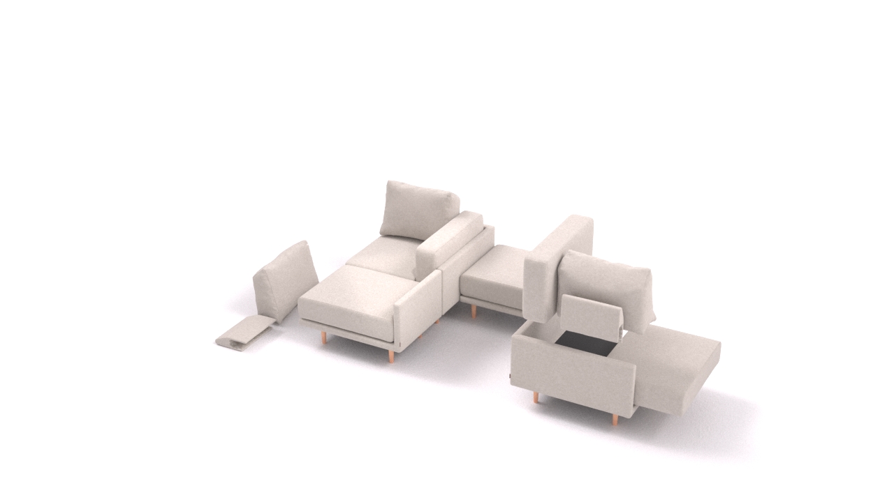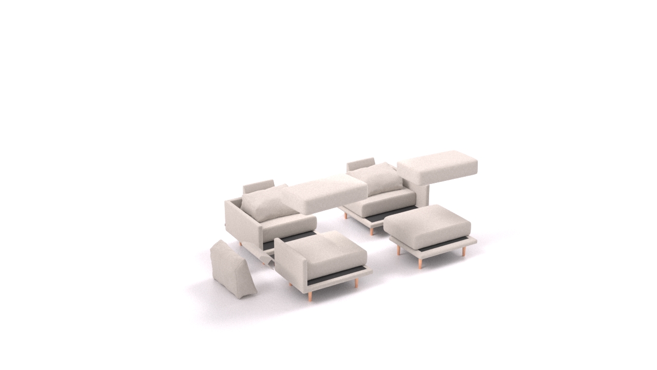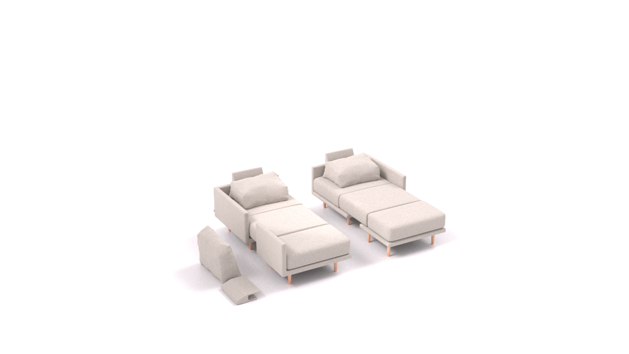 Clooods is not just a sofa. With a few movements, you can transform it into many different positions. Move the slider to see some positions.