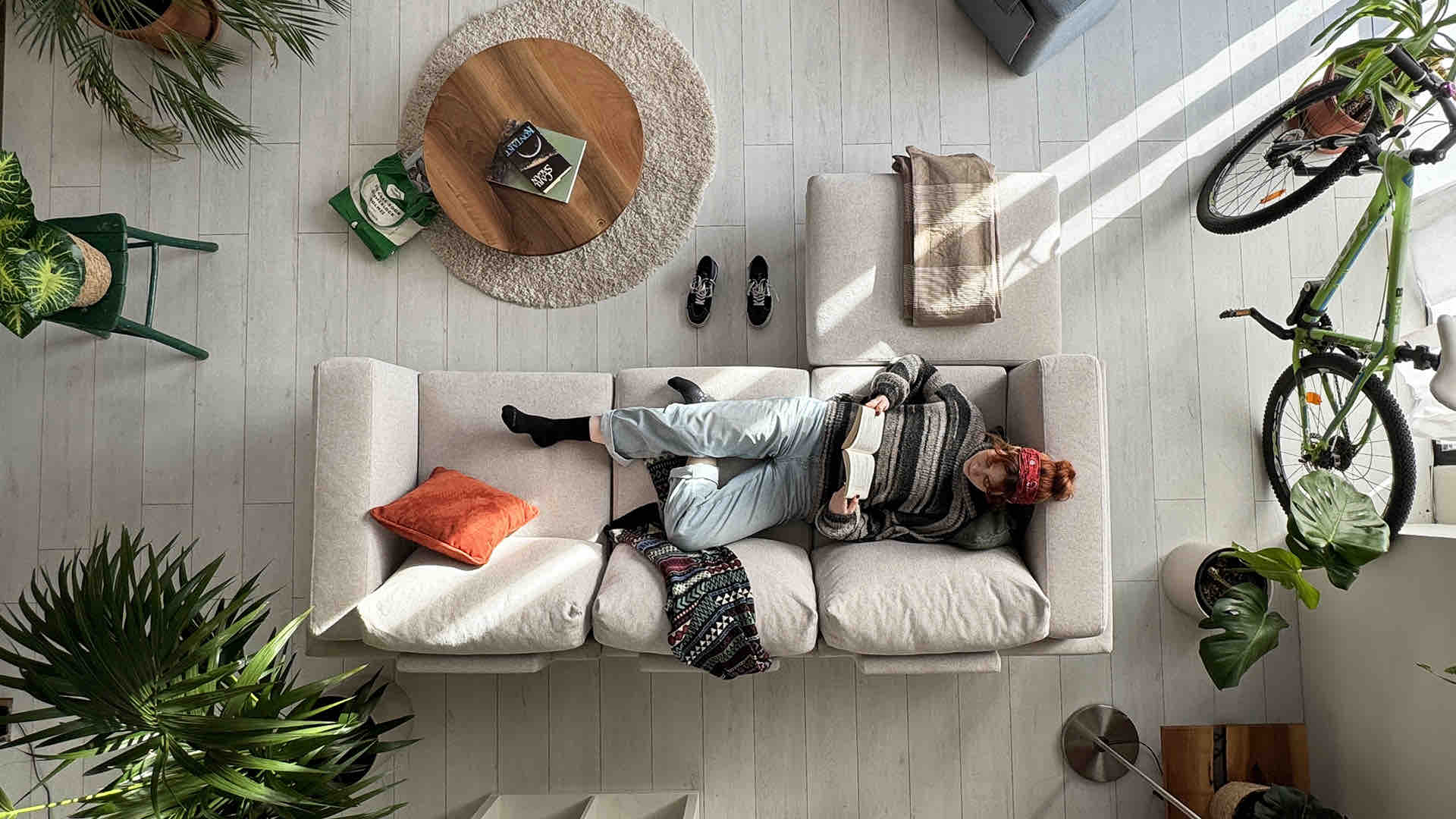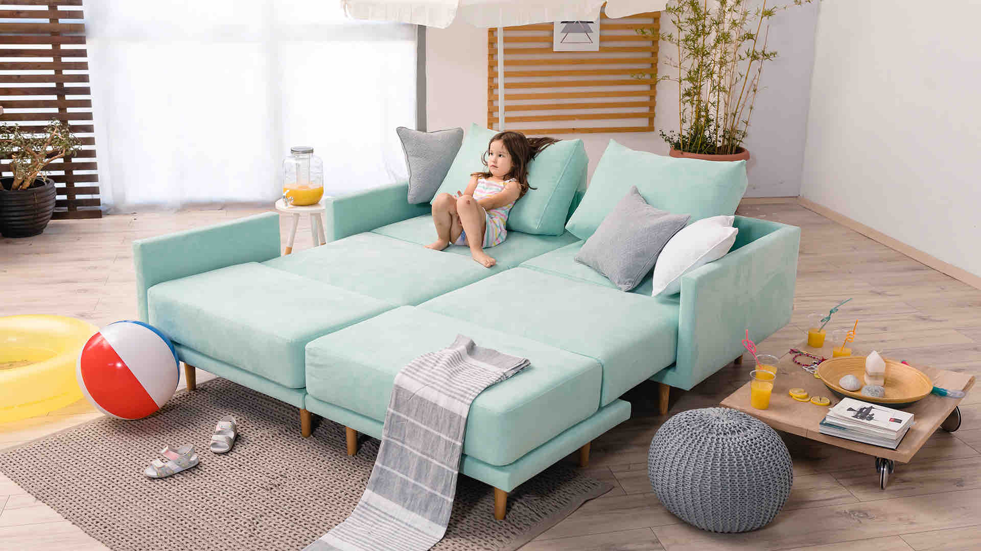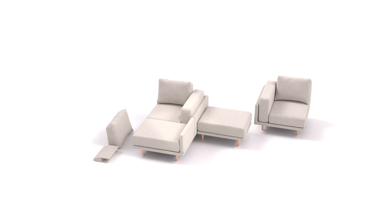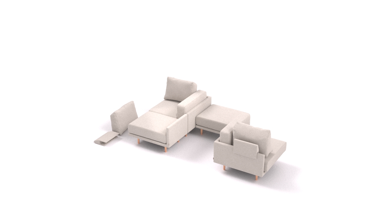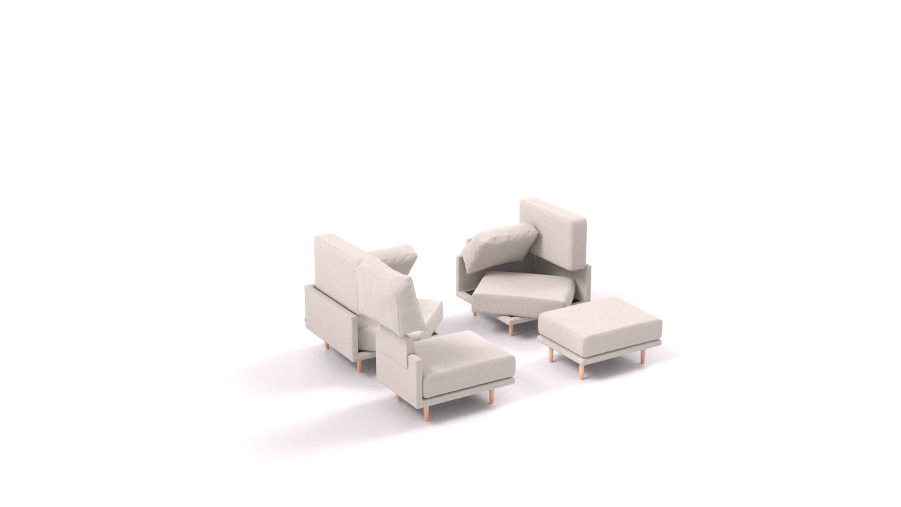 Clooods is not just a sofa. With a few movements, you can transform it into many different positions. Move the slider to see some positions.